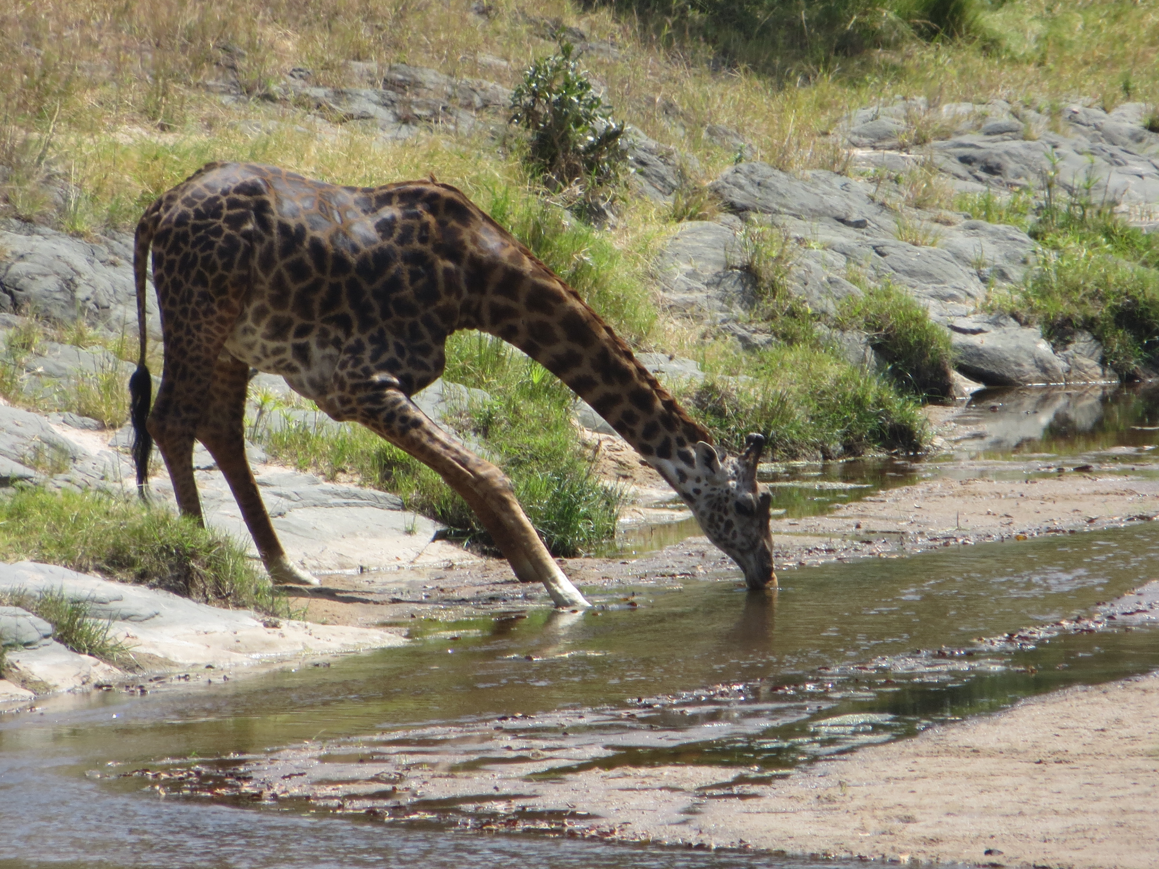 The walk lasted about an hour and then I went back to the lodge for breakfast. Afterwards we me Albert and went on our final game drive. We saw 7 cheetahs, 8 lions, hippos, crocodiles, hyenas, and of course zebras and wildebeest. The best photos were of a python slithering towards our jeep and a giraffe drinking water, which is a hilarious sight. He had to bend over several times in preparation, and then spread out his legs so he was closer to the ground to finally bend down and drink. Giraffes cannot just bend over quickly because all the blood would run to their head.