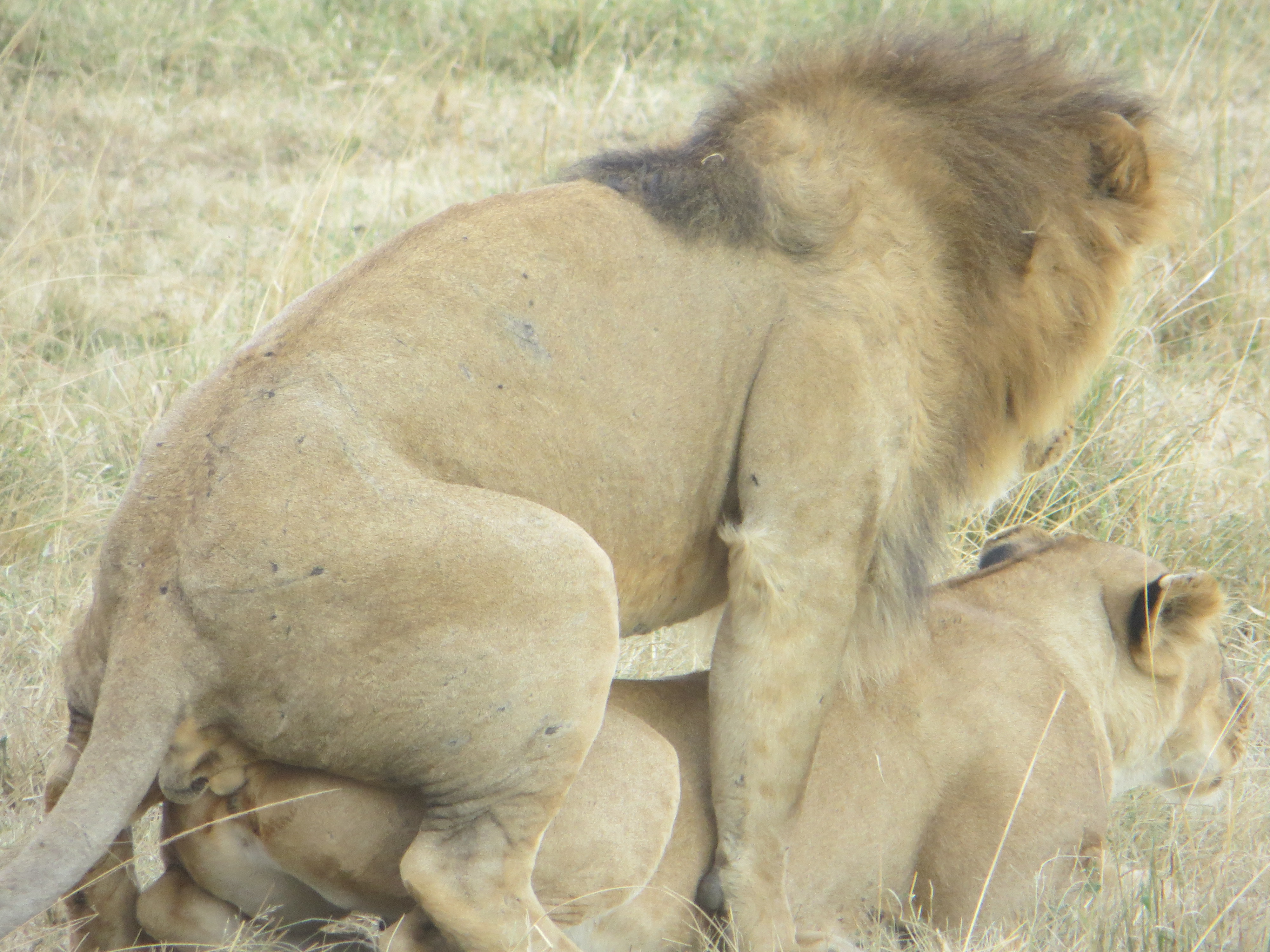 As we drove into the park, he spotted a lioness in the distance, when we drove to see her I noticed a male was there as well. Then this Hartebeest came running out of nowhere in the direction of the female lion. She ran to catch him, but the Hartebeest was too quick and out of reach so he got away. Then the lioness turned her attention the male lion because she wanted to mate. She flopped in the grass with her behind in the air ready for the taking, but the male lion walked right by her and kept going so she hopped up to chase him. We drove off.