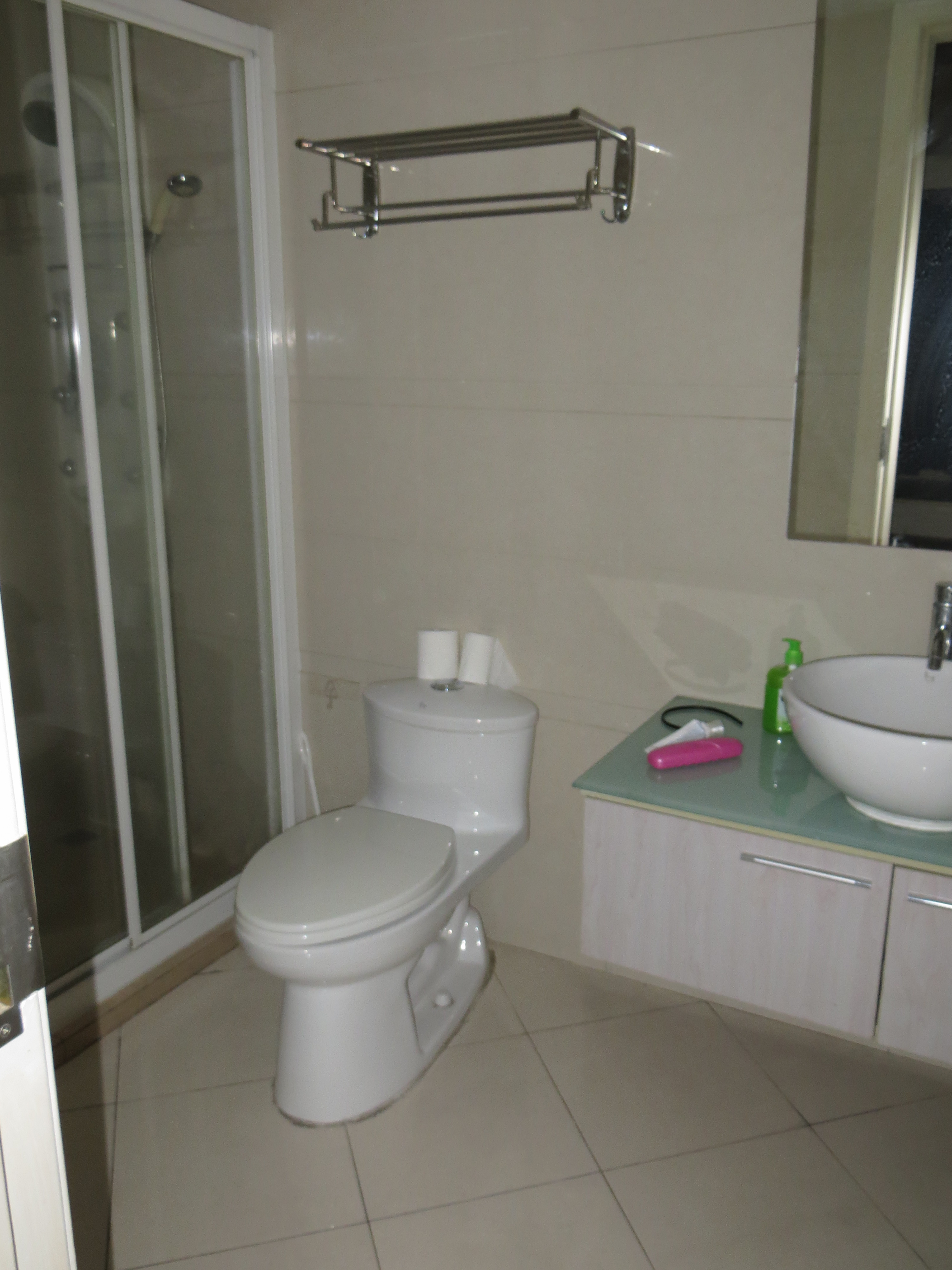 I still had three more nights in the hotel so I slowly moved stuff over to the apartment. On Monday morning, I said farewell to the hotel internet, checked out and moved in for good. That same morning, I had to have my Chinese physical – the one I had in the US was just for fun I suppose. I was given a chest x-ray, but it was taken while I had my clothes and bra on – no lead apron to protect the ovaries (too many people I suppose). Then off to get blood and urine samples, a cardio and blood pressure test. The nurse went through my vein and the blood pooled under the skin. I applied pressure but the blood started running down my arm and left spots in the hall. Some people were freaking out at the sight of my blood. I felt bad it was on the floor, but none of the med staff seemed concerned or cared about cleaning it up. Welcome to Chinese healthcare. For the urine sample, they gave us a plastic test tube and we had to use a squat toilet to fill it. I took a cup from the water fountain because there was no way I was going to be able to aim my pee into the tiny test tube opening. After the physical, the school took my passport for my Alien resident visa at the police station. It will be with the police for 15 days so I am on lockdown in the complex.