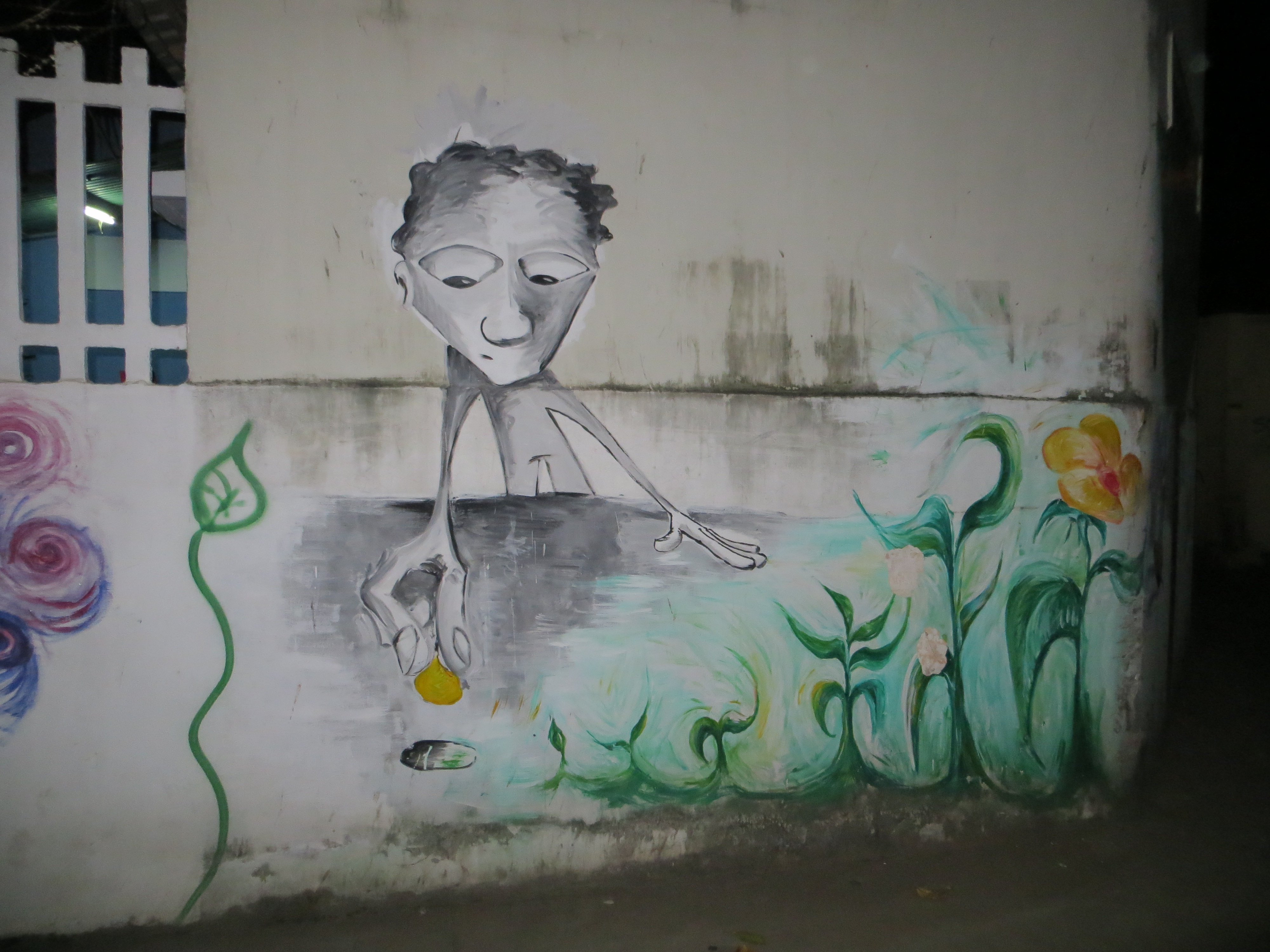 The second stop, The Lost Room, served us an array of appetizers: a tasty goat cheese dip with veges, spicy spring rolls, a platter of amuz-bouches (spelling?) consisting of spoons filed with crab cakes and I cannot remember the other. There was also a small dish of olives. It was a mouth-watering start. The most fun was driving down the graffiti-filled alleys to get to these hidden gems. Next we went to a terrific local BBQ spot (54 La-Ngeach Sros) and had fried frogs (and yes they do taste like chicken), tasty garlic marinated, grilled pork ribs, garlic sautéed morning glory, and rice. It was served with dishes of lime, salt and pepper, chopped garlic and peppers in fish sauce, and soy (the familiar sides for BunCha- a deeeeeelicious Vietnamese noodle and grilled meat soup). You squeeze the lime into the salt and pepper to make loose dipping paste. But lazy me prefers to dump the side flavors on my rice and mix everything together – YUMMMMMMMY!!!!!!!!!!!! We had lots of beers. Mr. Smiley joined us for this section and he got a big chuckle when he saw me dump everything into my bowl of rice and chow down with my chop sticks. He looked at Ducky and said that I ate like a local. He told me about his daughter who recently got a scholarship to study abroad and that his family was happier that he now gave up drinking. I laughed and said me too since he was driving. I had a really fun time talking with him. He reminded me of why I so desperately wanted to live in this area of the world and am sorry I am not now. I hope I grow to like China, but for right now I have not settled in or surrendered Dorothy.