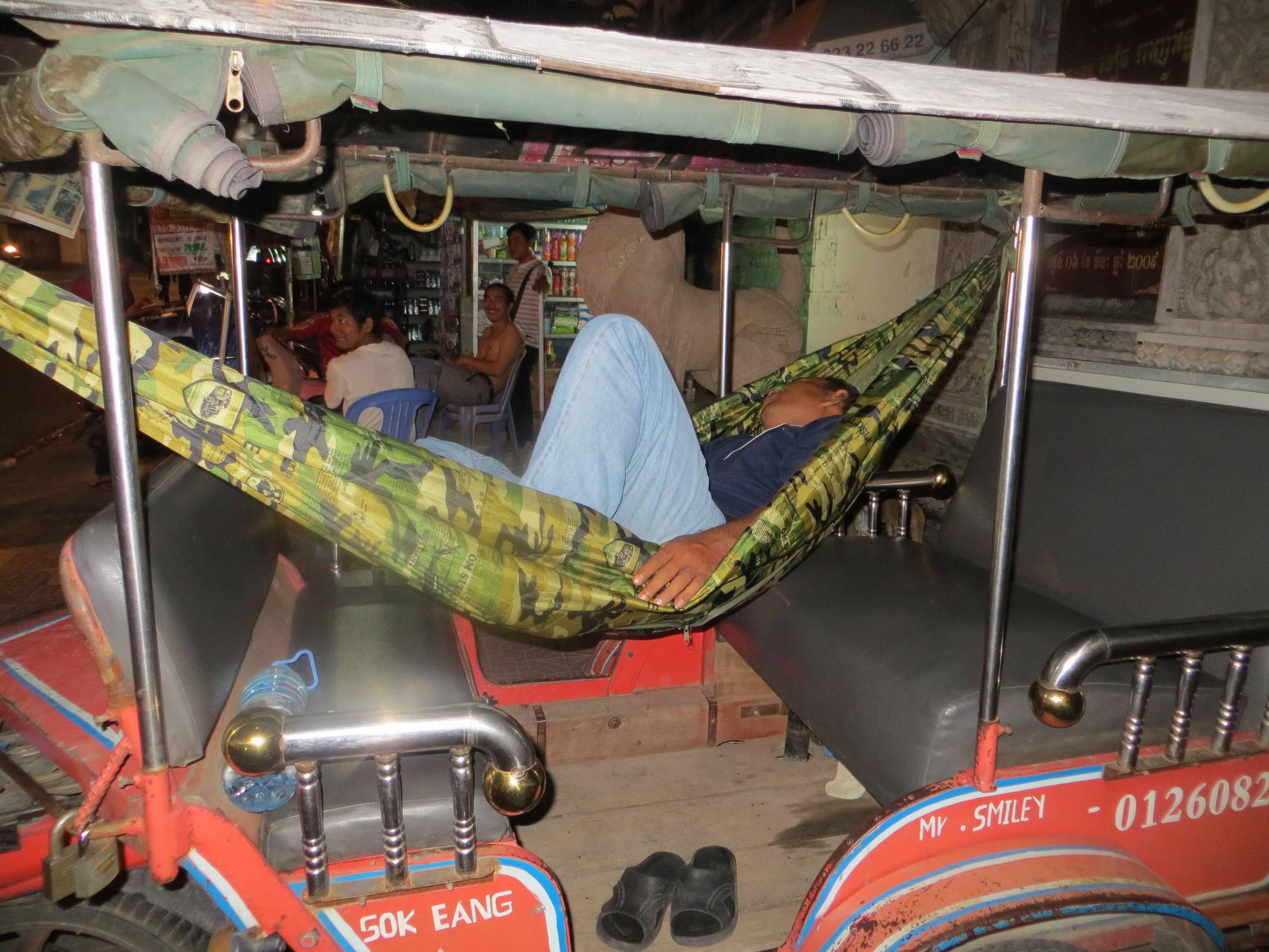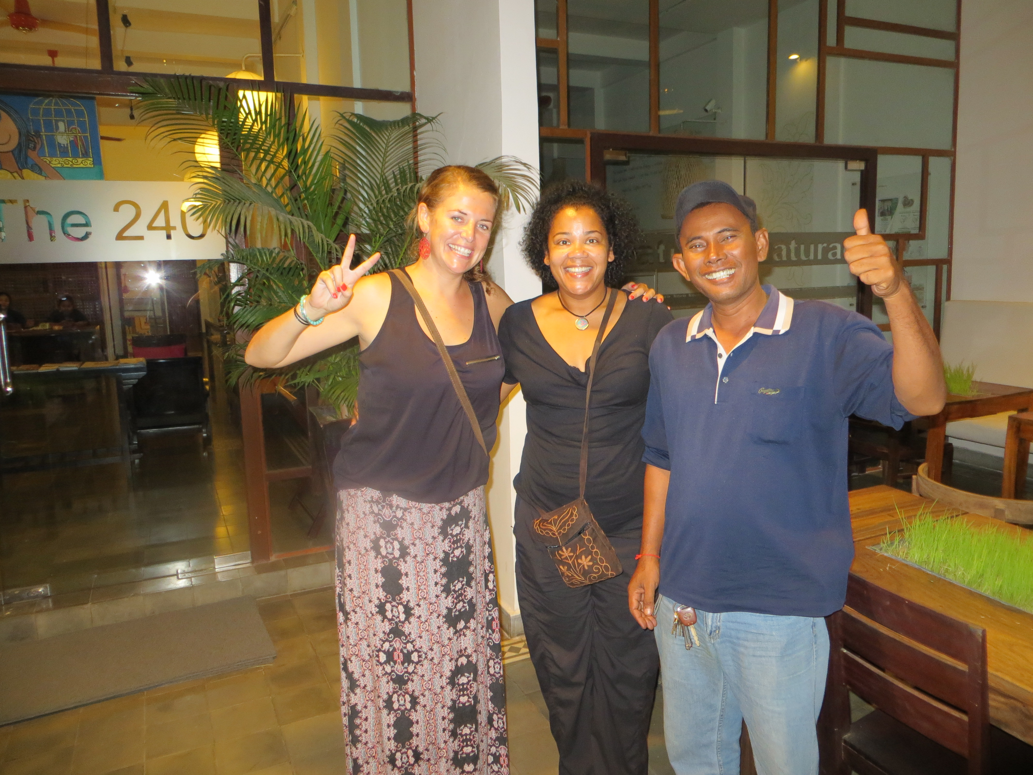Our final stop was The Duplex for dessert. This was the least of my favorites. I know how to make a good dessert and these did not hit the spot for me: a thinly sliced apple lasagna stack (I am not a fan of the “stack” – too 80s for me), a chocolate, sweet rice and banana pile, and a third that I cannot remember. I completed my final dishes with an iced local coffee with sweetened condensed milk (a very fattening treat). Truly a fun evening. When we came out, Mr. Smiley was asleep in the tuk-tuk. He had attached his hammock to the sides and was hovering just above the seats. He was zonked out from all the tasty BBQ. It was a shame to wake him; he looked so peaceful. I highly recommend this tour. The next day as promised, Ducky sent me a list of more places to try.