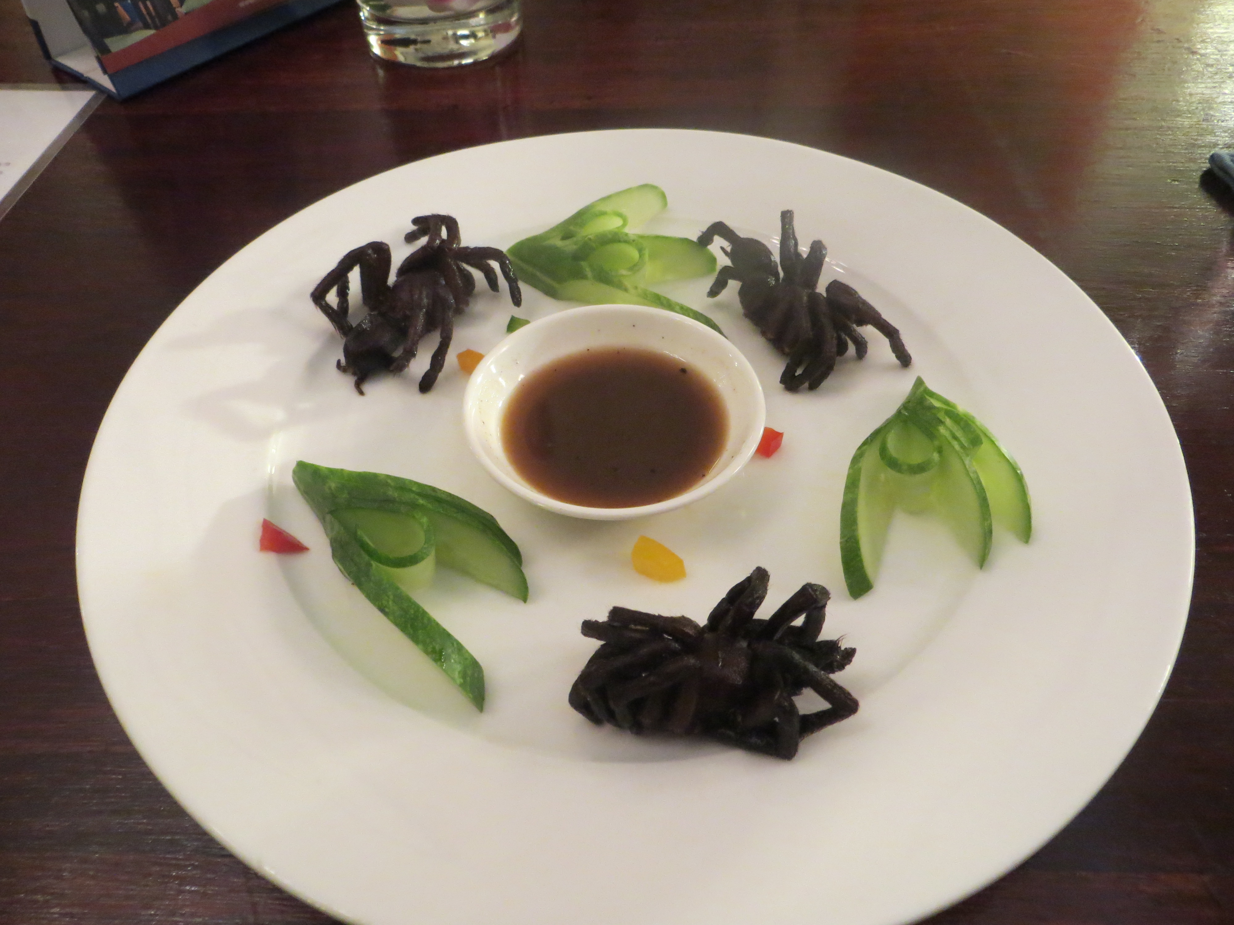 I went to Romdeng, a restaurant from her list, my second evening. It serves as a training ground for street kids to learn a profession. I ate crispy tarantulas (sort of like a funky soft shell crab) and beef with red fire ants (very spicy). I had a really good chili, lime margarita.