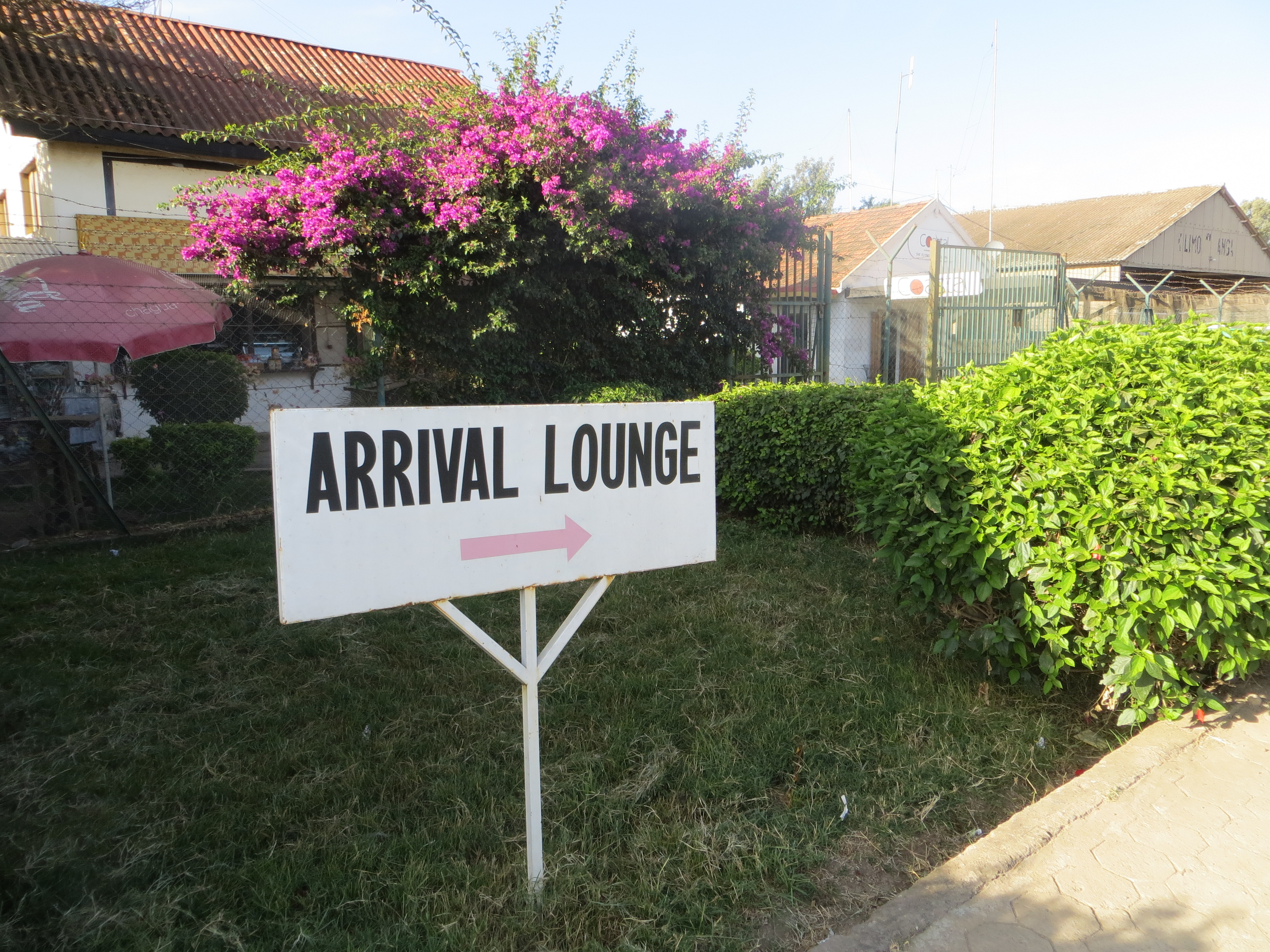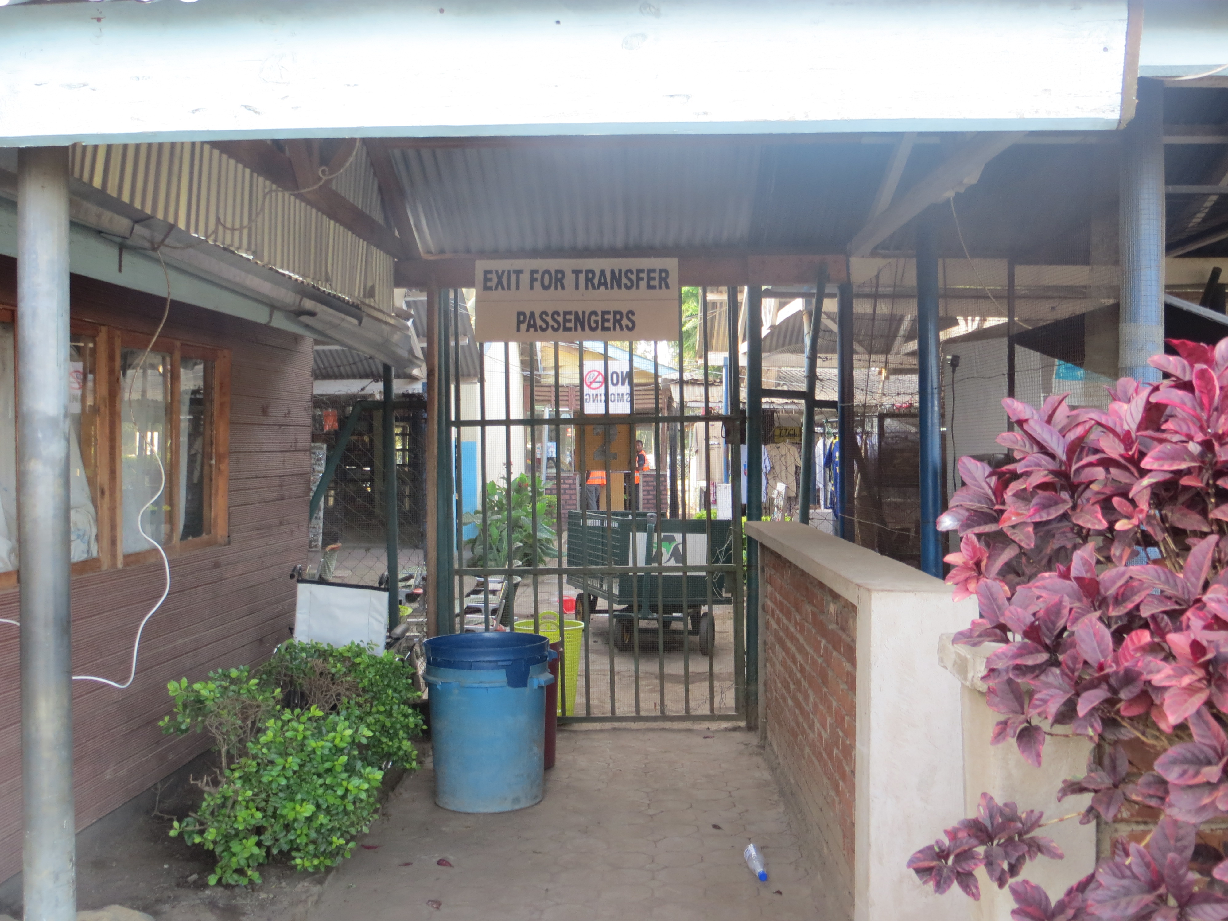 The airport looks more like an old abandoned bus depot from yesteryear. There are wooden pew-like benches inside; small stands selling all sorts of beaded trinkets and t-shirts; two snack shops; and an open air seating area that faces the runway. Lots of little metal shacks that are identified by signs that say arrival area, departure area, or restroom.