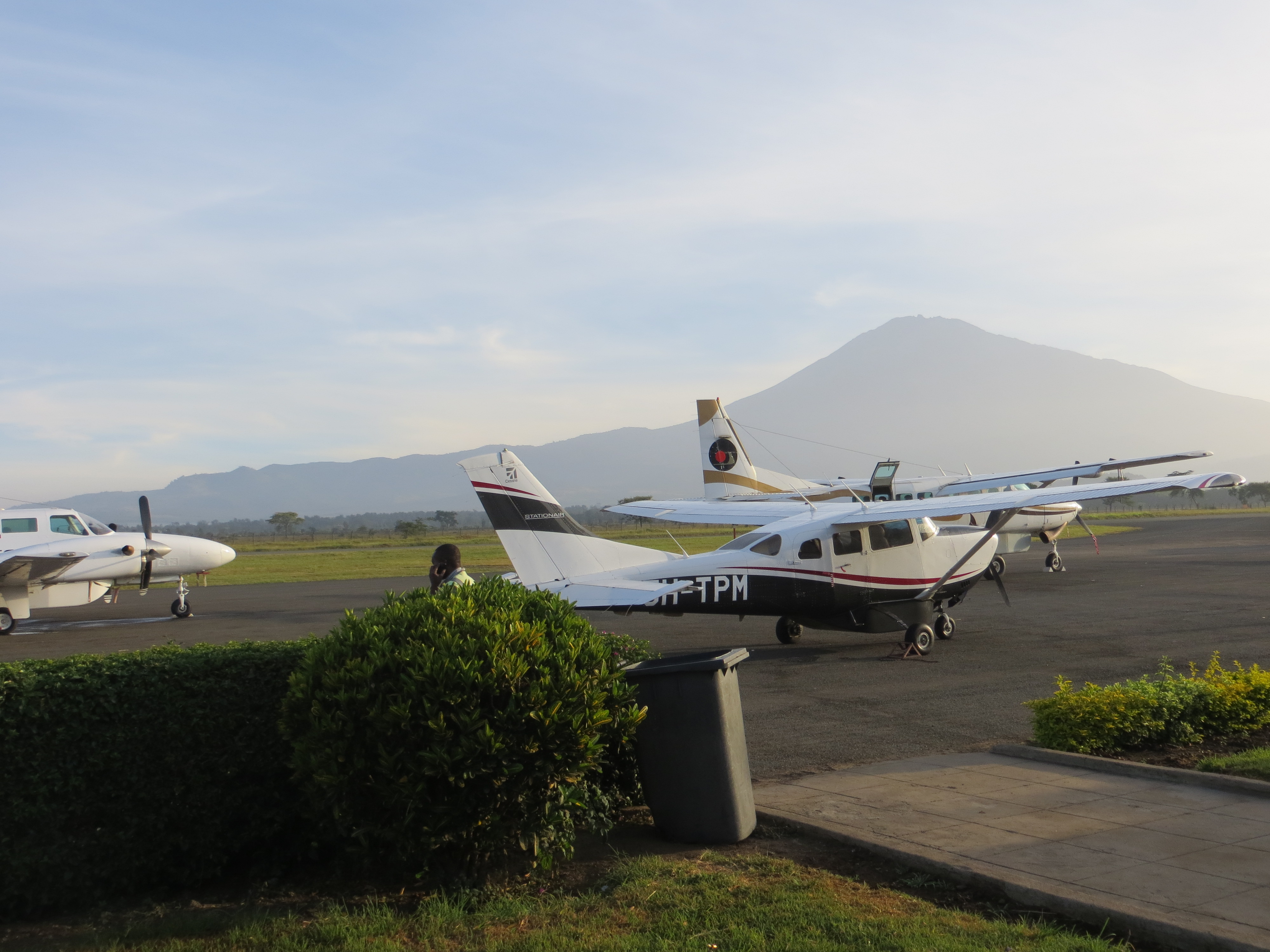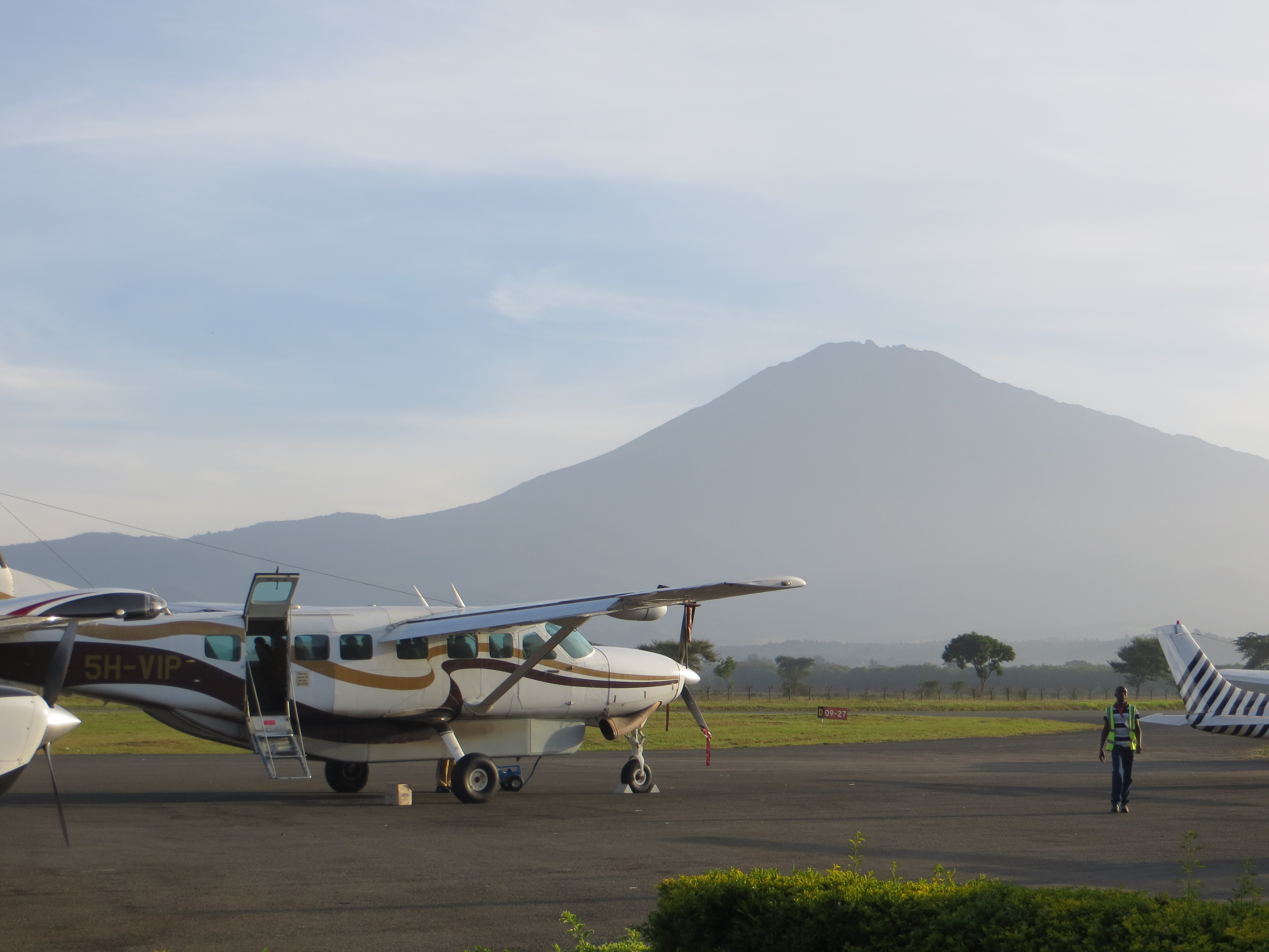 My flight to Ndutu in Southern Serengeti was at 8am. I left the coffee lodge at 7am and it was a slightly bumpy 10 minute drive to the airport which was protected by a 10 ft. chain linked fence. The check-in in counter is feels more like the check-in at a low-rent hotel. Two guys just checking passports and tickets against a hand-written ledger. Then they write out your boarding pass, which resembles a large theatre ticket. My bags were weighed – they cannot be over 50lbs and then they are carried over to an x-ray machine to check them for dangerous items. Once you are cleared the bags are left by the side of the gravel airstrip where all the small planes are lined up and waiting for passengers.