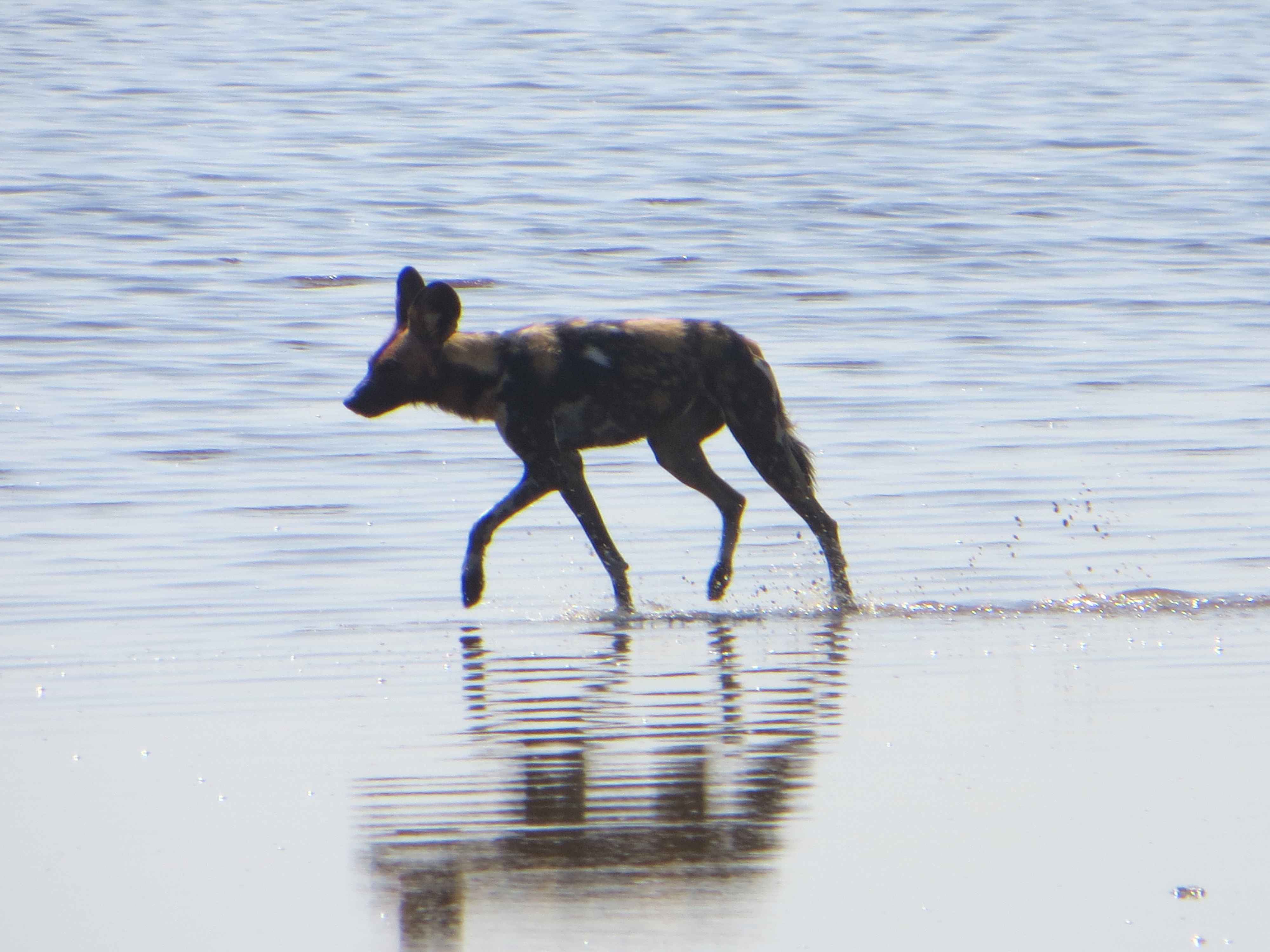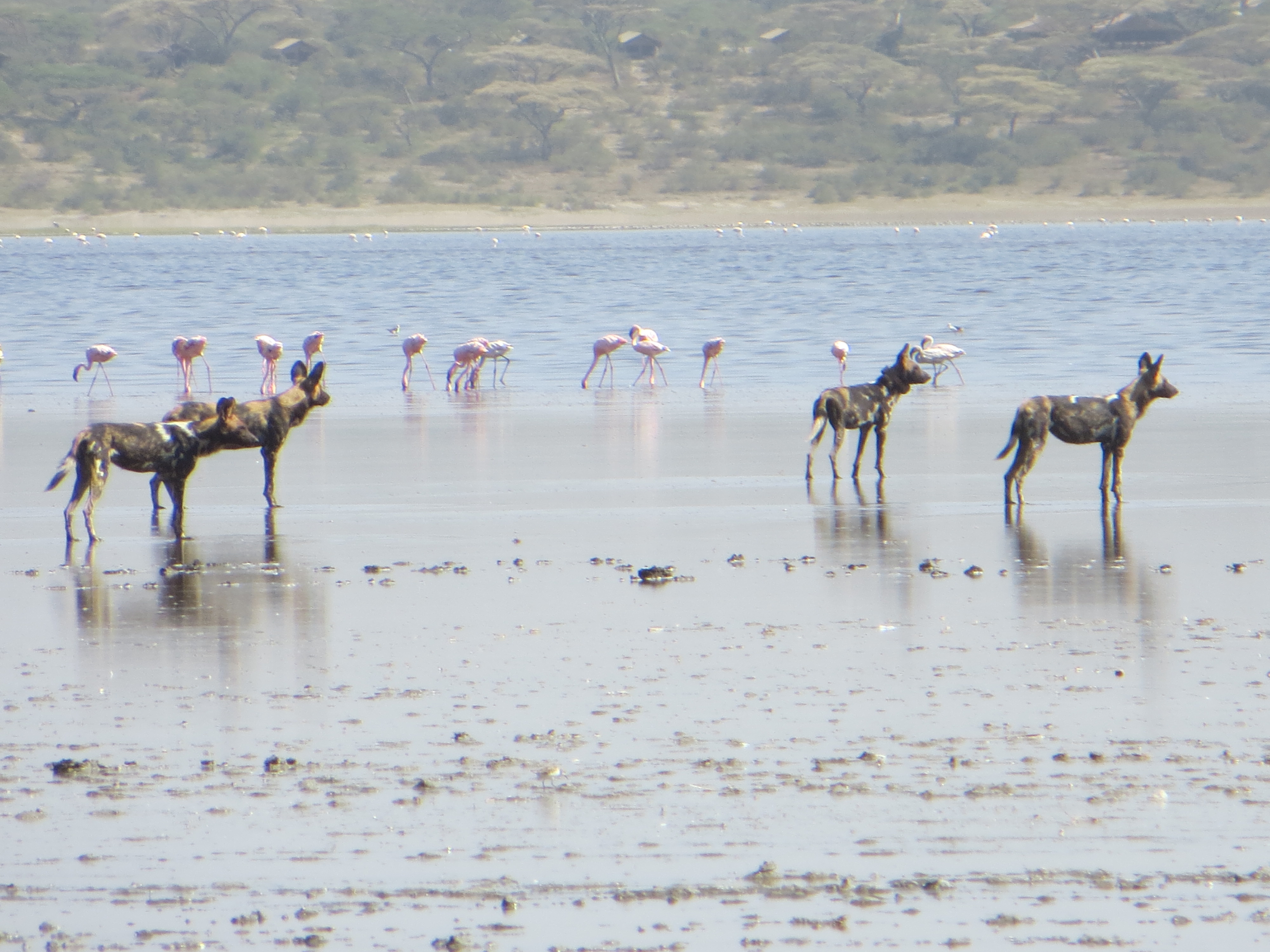 We followed them as they trotted along with their big donkey eras flapping in the wind. They have such a joyous gait as they high-stepped it through the low grasses. Their coats are black with brown and yellow spotted accents. The female had a collar so they are part of a research study that tracks their movements. Unfortunately they were heading toward Maassai land where the Massai live. If they kill their goats or cattle, the Massai may poison them to get rid of them. Ken explained to me their hunting techniques. Since they are not strong enough to take down their prey they surround it and take bites out of the flesh so the animal dies from blood loss and shock. They literally devour it on the spot. They are eating machines.
