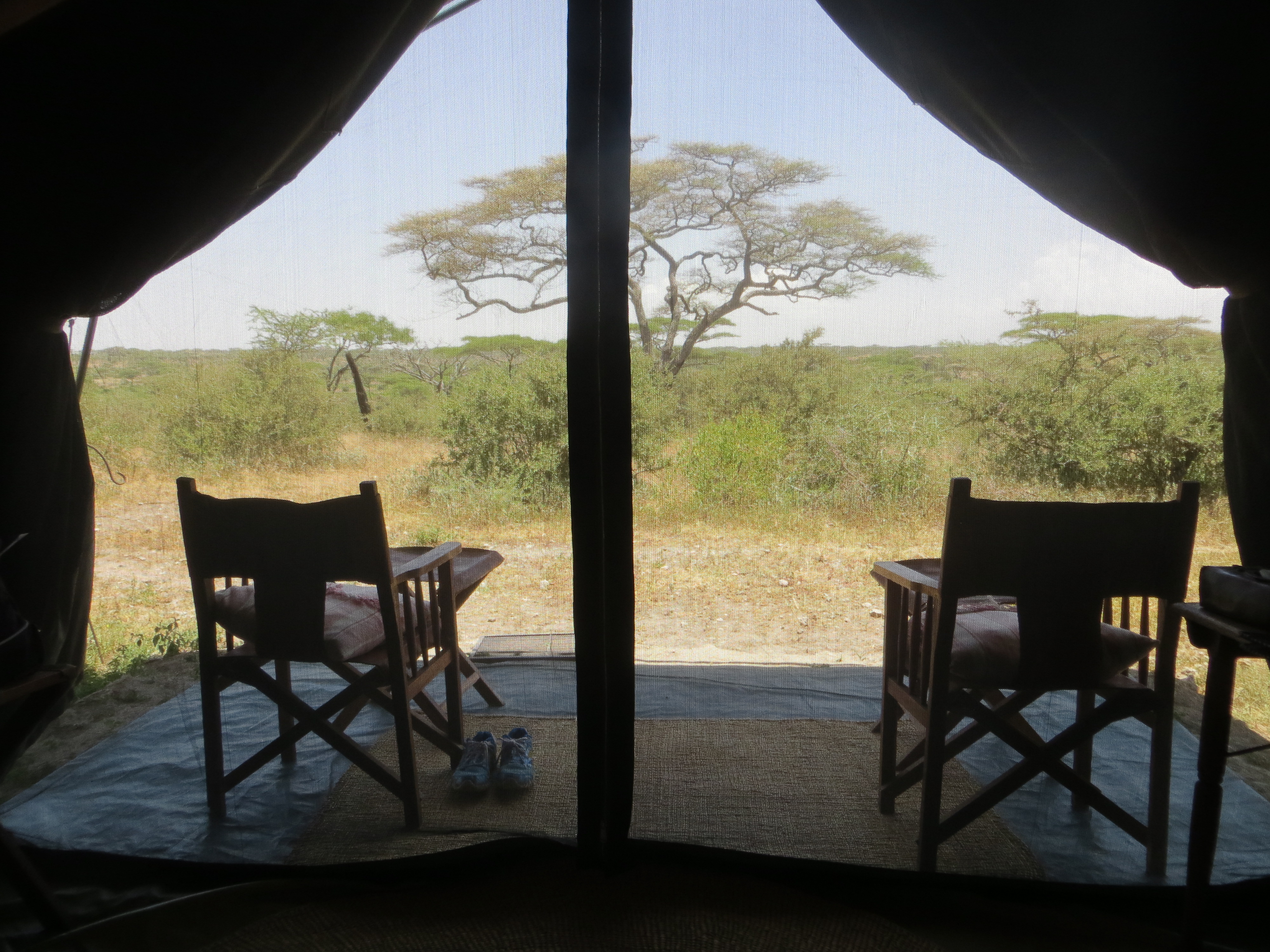 We flew over Ngorongoro Crater. I saw lots of jeeps but no animals – kind of like when I was there a few years ago. When we landed in Ndutu about 45 minutes later, I was met by my guide Ken. He was very nice but I could tell he was a bit concerned that I was an unreasonable person because I had booked a private car for game drives. So he wanted to know if it was OK if they served me lunch and dinner with everyone else. I giggled and said, “No way will I eat with anyone else. As a matter of fact I don’t want anyone to look at me.” He could tell I was kidding. I just explained that if I rode with other guests, I would be outnumbered and outvoted when it came to decisions for the day. I had had that experience in the past with a couple who only wanted to go out for an hour and then return for breakfast. It created quite a headache so to make sure I had an enjoyable trip, I booked a private car. I like to go out and eat breakfast and lunch in the bush so I can see as much as possible. I also like to stay out as long as possible on the afternoon drives.