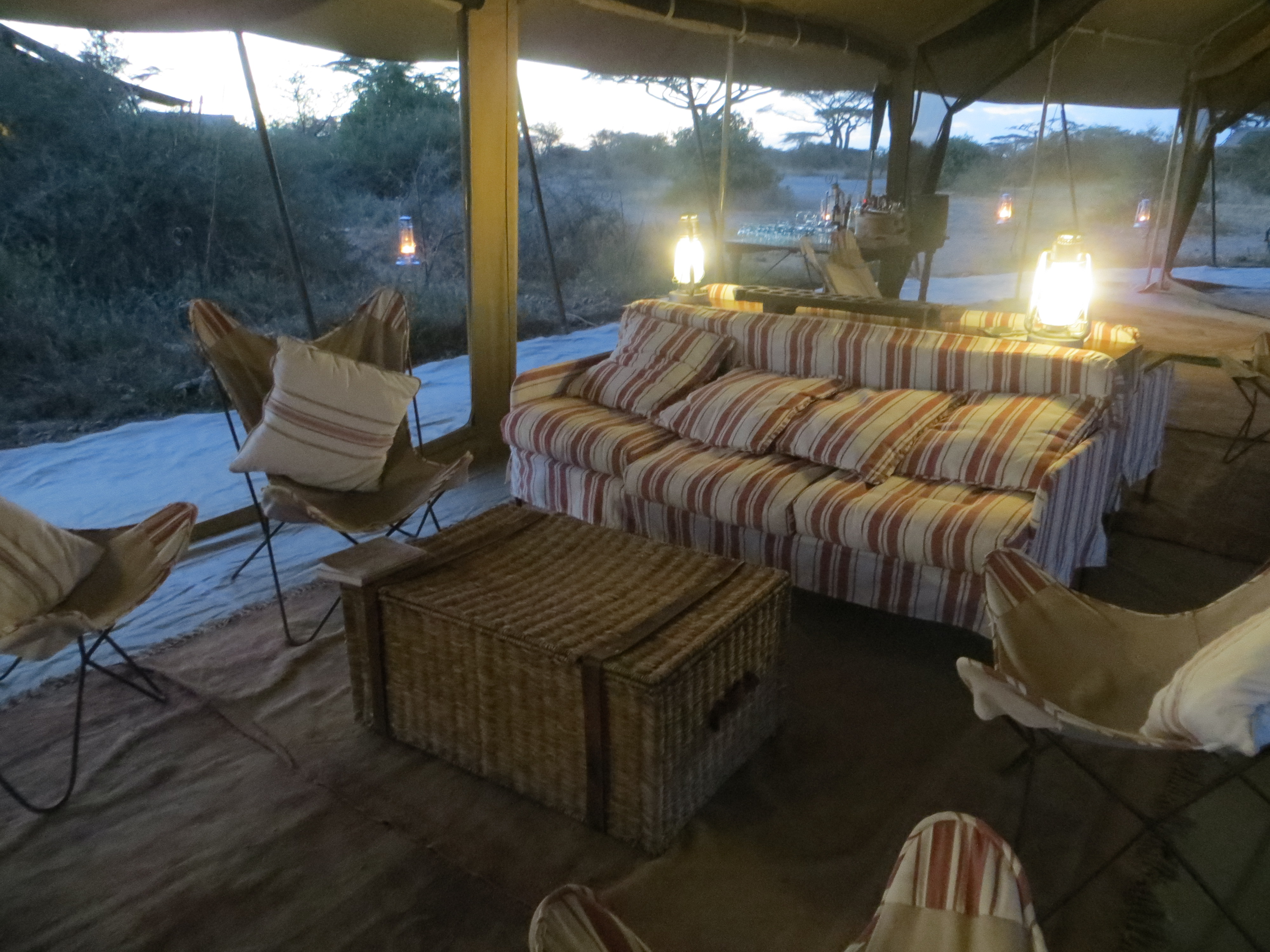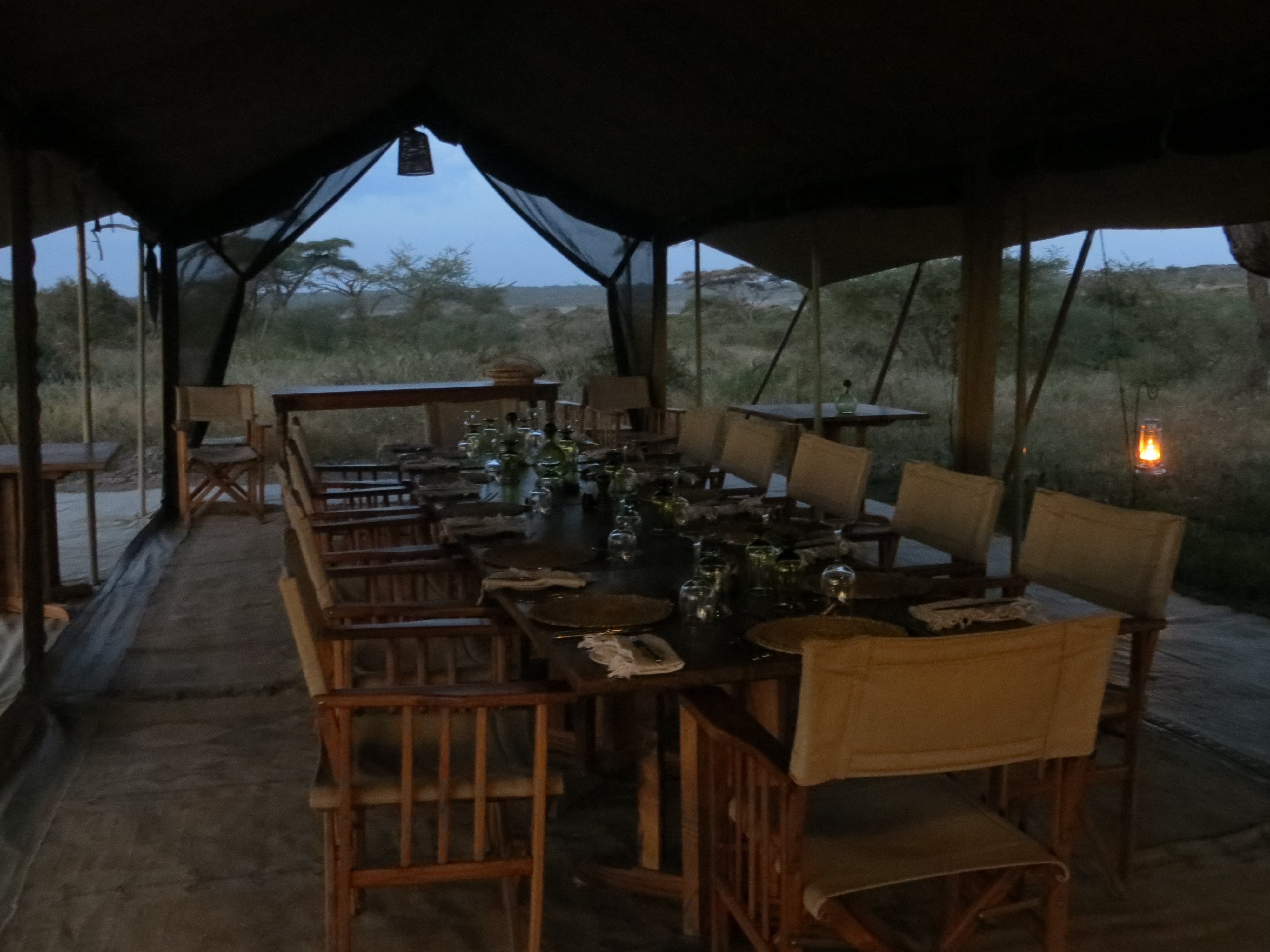 During the pre-dinner drinks phase of the PM program. All the guests in the camp sat around a huge fire nibbling on roasted cashews and imbibing the poison of choice. Most had white or red wine, one of the 4 doctors had Tusker beer and I had a gin & tonic. At one point I zoned out of the innocuous conversation and started sending rain signals to the clouds. The guides were complaining about the lack of rain so far and how dusty it was. So like a rain shaman, I jumped up and started doing a chant and dance in a ring about the fire. The ritual consisted of three grunts while simultaneously marching and alternating the bending of my elbows so I was doing a sort of hunched salute. I did this three times before throwing my head back hollering “rain” and then giving 3 seconds of jazz hands to the sky. I did one complete revolution about the fire. The other guests laughed and told Hans, one of the camp attendants not to refill my glass.