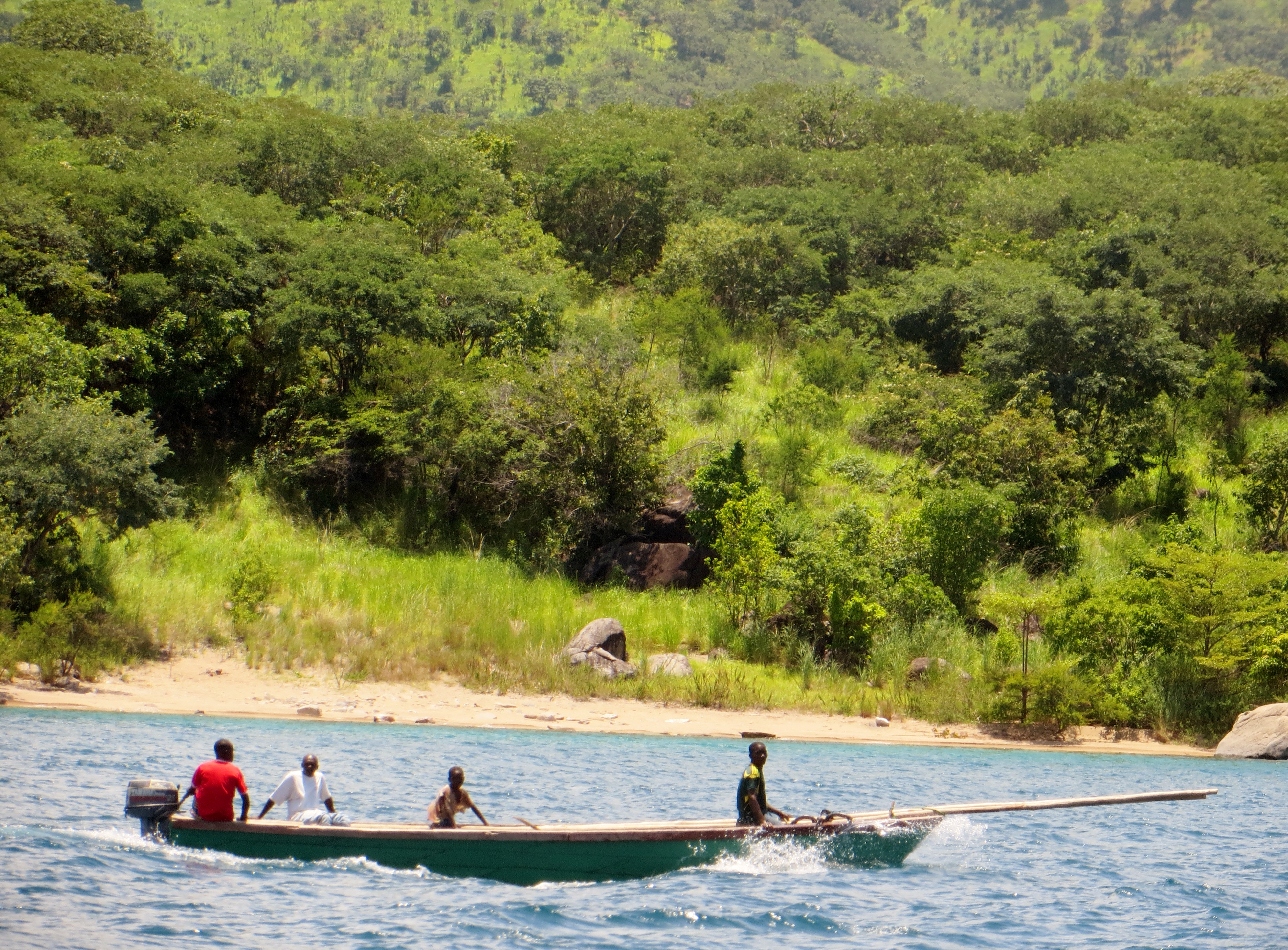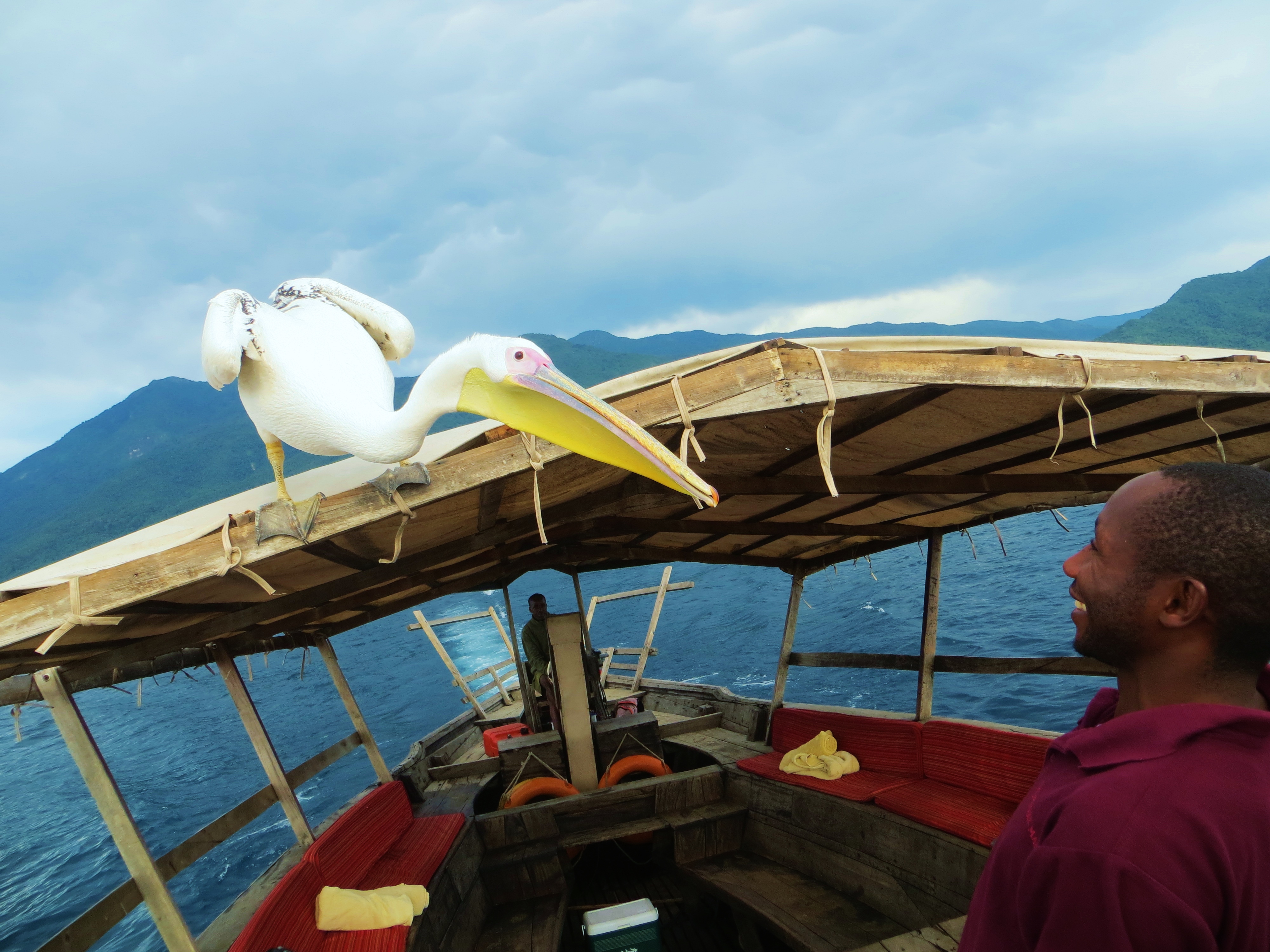 Lake Tanganyika is crystal clear. It is the second largest fresh water lake in the world. The largest is in Siberia. On the boat ride in, we made our afternoon plans: we’d take the boat out around 4:30 and go to an area in the lake that is 400 meters deep to swim. It is safe to swim in the deep areas because there will not be any crocodiles, hippos, or water snakes to bite us. After swimming we would go fishing and hopefully catch a Yellow Belly, which makes delicious sashimi.