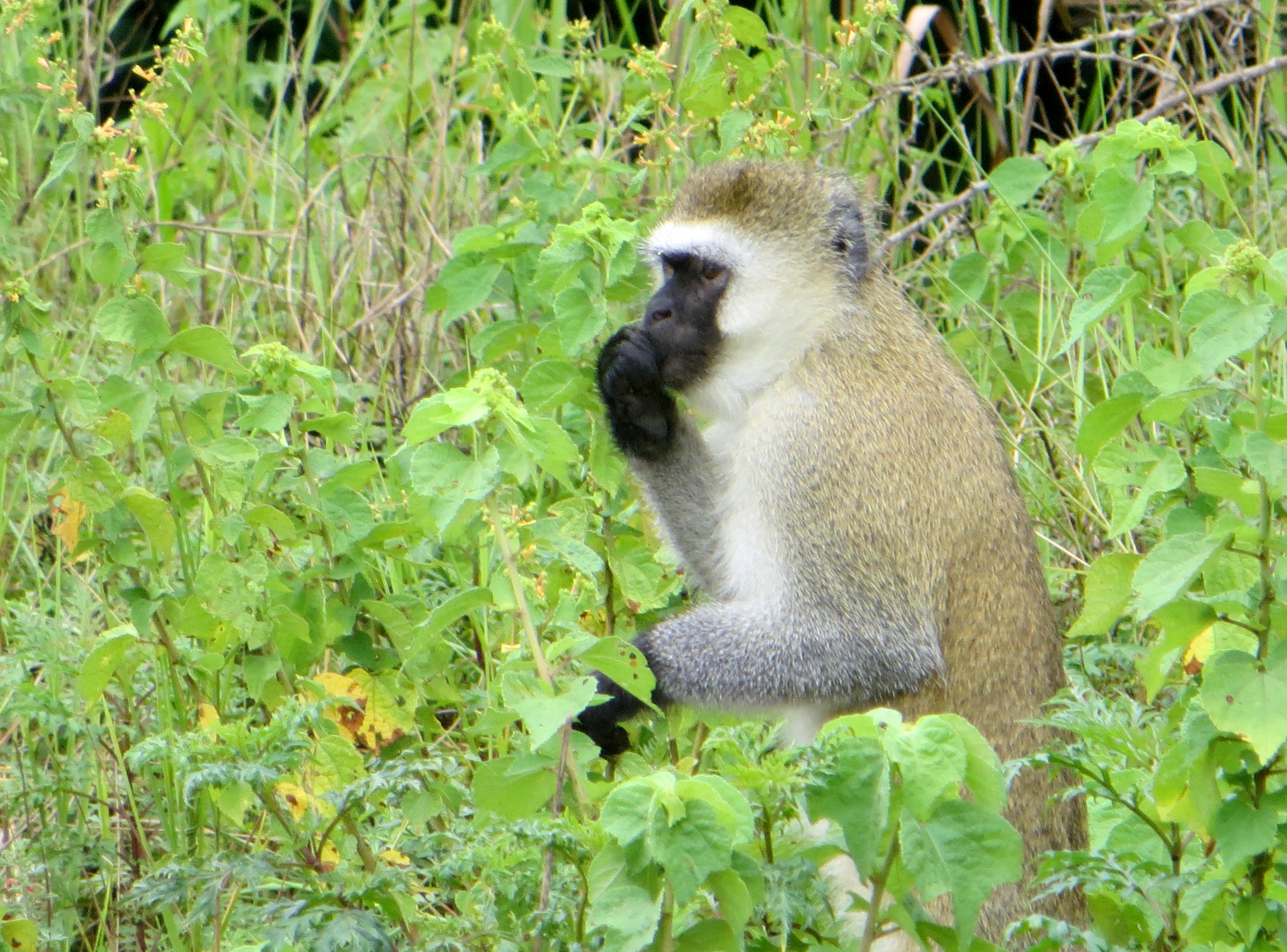I moved from chair to chair in the main ten unable to calm my racing thoughts. This paradise was soon becoming my No Exit. I went back to my hut after lunch and reclined on the bed for a while. Suddenly I could feel some eyes watching me and when I sat up, there was a large troupe of about 20 baboons about to enter my room. They were on the deck and some were about to swing in from the roof. All stopped when they saw me, and then quickly disappeared. I sat on me bed for a while and then I saw a few stragglers who were late for the party pass by and peep in looking for their friends. There expressions were funny as if confused and not sure what to do. Then from behind my tent was a huge squabble complete with barking, slapping, and shrieking. I could hear the rustling of the tree branches as they jumped from tree to tree.
