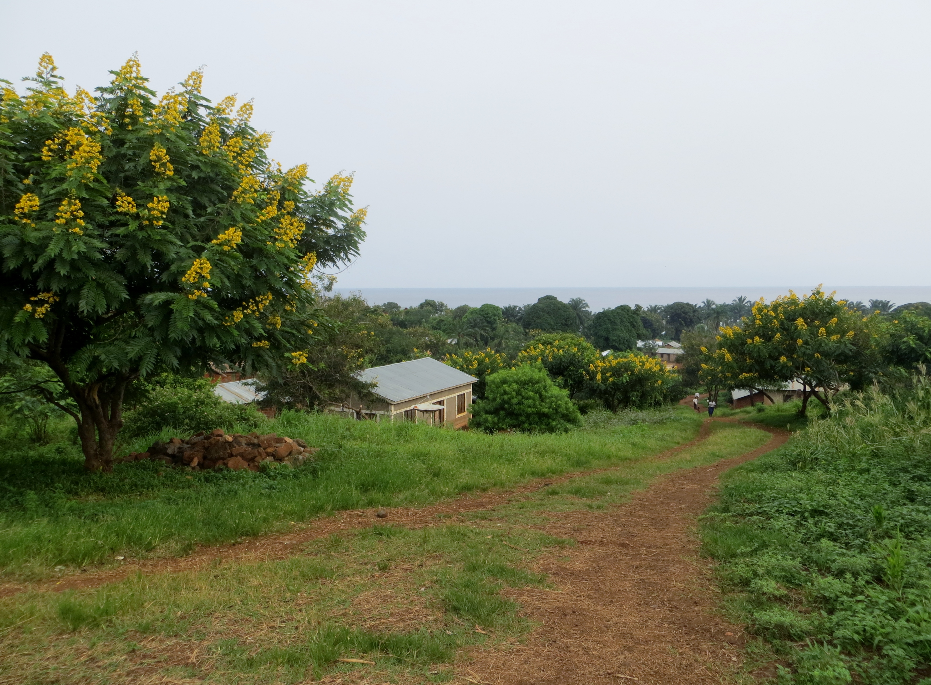 Woke up at 5:30AM to get ready to leave. The boat was scheduled to take Pam, David, and I to the village to deliver our school and medical supplies. Kate and Cameron met us at breakfast to say farewell. They had a lot to do because a full house was expected in the afternoon and they were all persnickety eaters – demanding things that were not available like no meat of any kind; Arugula lettuce only; some very specific type of tofu; gluten-free pasta and baked goods; and no sugar or butter. Thank god I was leaving cuz this butter lickin’, meat eatin’, and gluten-full mama would not be able to survive in their environment.
